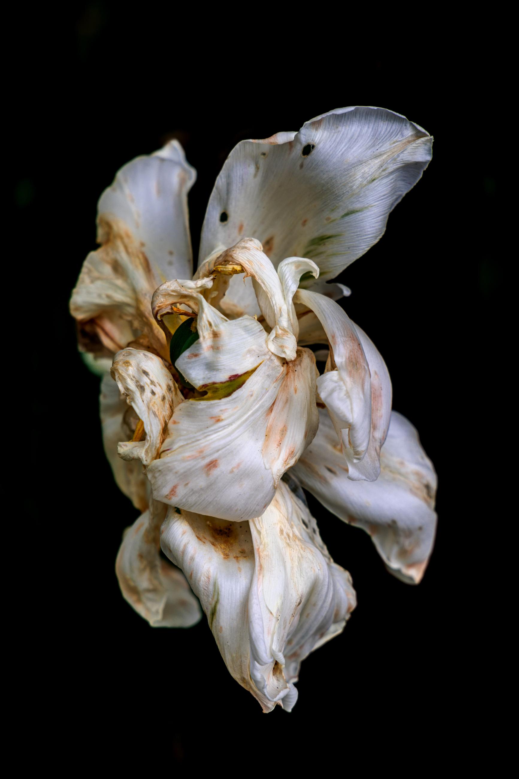 对于摄影师而言,这朵垂死的郁金香比一朵盛开的完美花朵要有趣得多,这得益于它所呈现出的色彩、花瓣的曲折、扭曲和纹理,以及其多方向的不对称性。