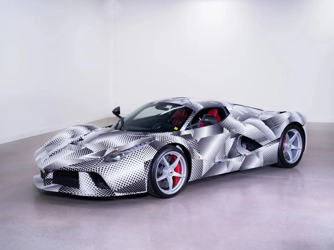 这台非凡的非混合动力LaFerrari原型车,流畅的量产风格车身至今仍包裹着当年令全球车迷心驰神往的炫目伪装涂装。