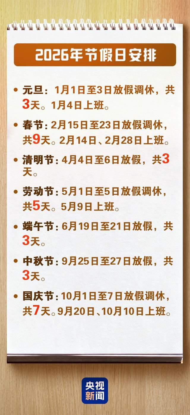 除了春节,2026年其他传统节日和公共假期的安排也已明晰: