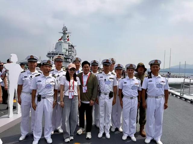 可就这么一身,站在山东舰旁边,反而衬得她整个人清爽透亮,不得不说,气质这块儿她是拿捏得死死的。