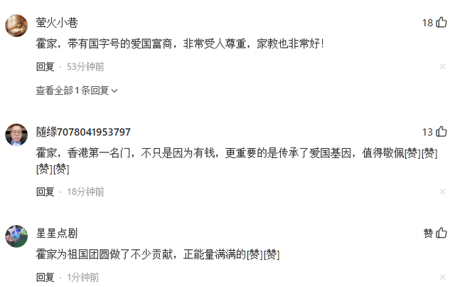 所以不少人说:霍家是香港第一名门,不只是因为有钱,更重要的是传承了爱国基因,值得敬佩。