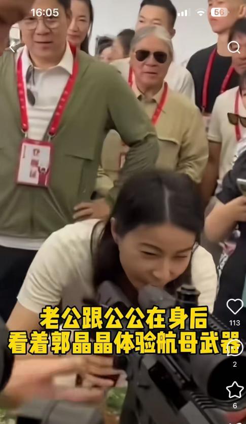 而且到了后面体验武器的环节,人家工作人员在旁边讲解,郭晶晶听得是非常的专注。