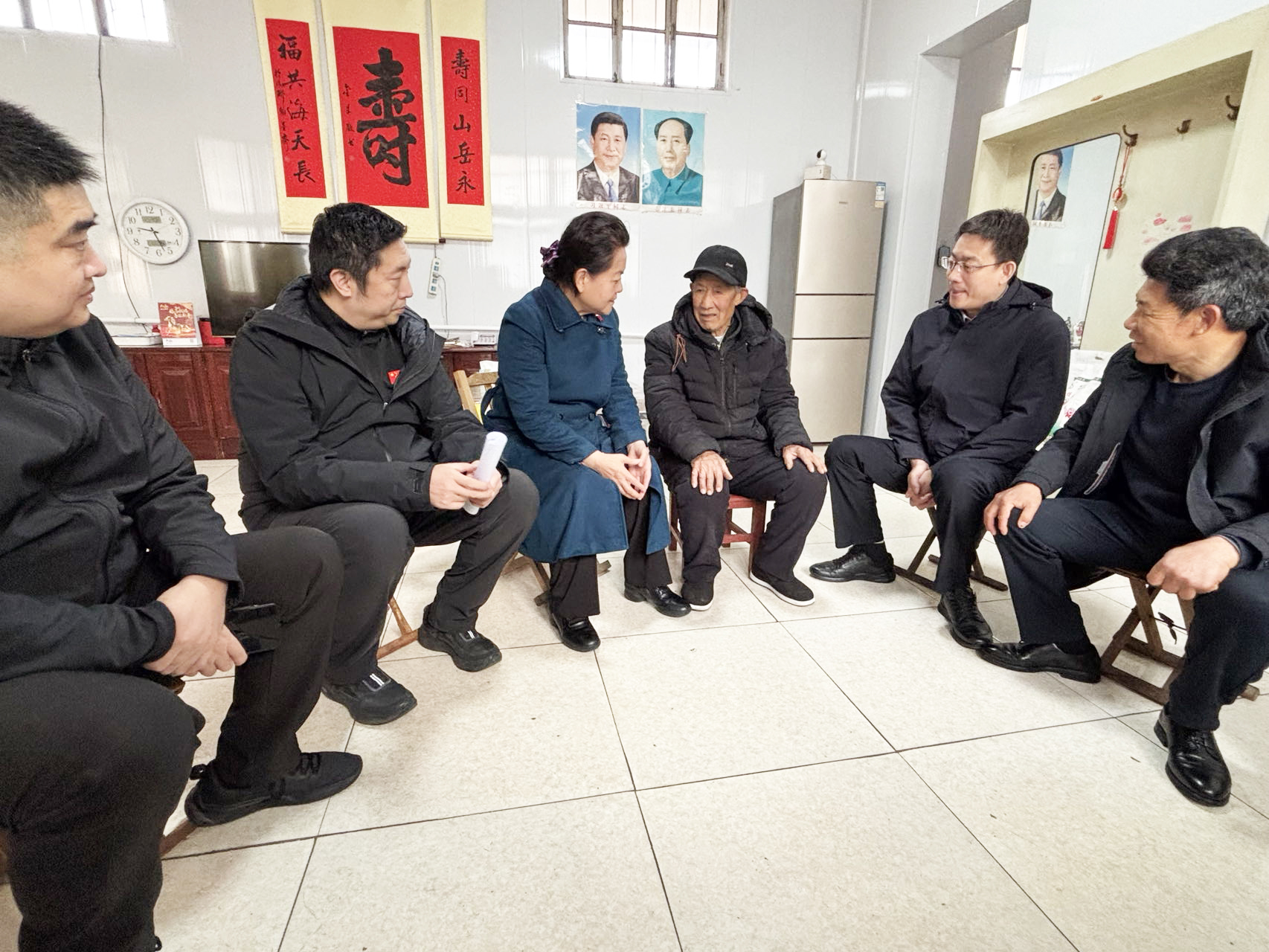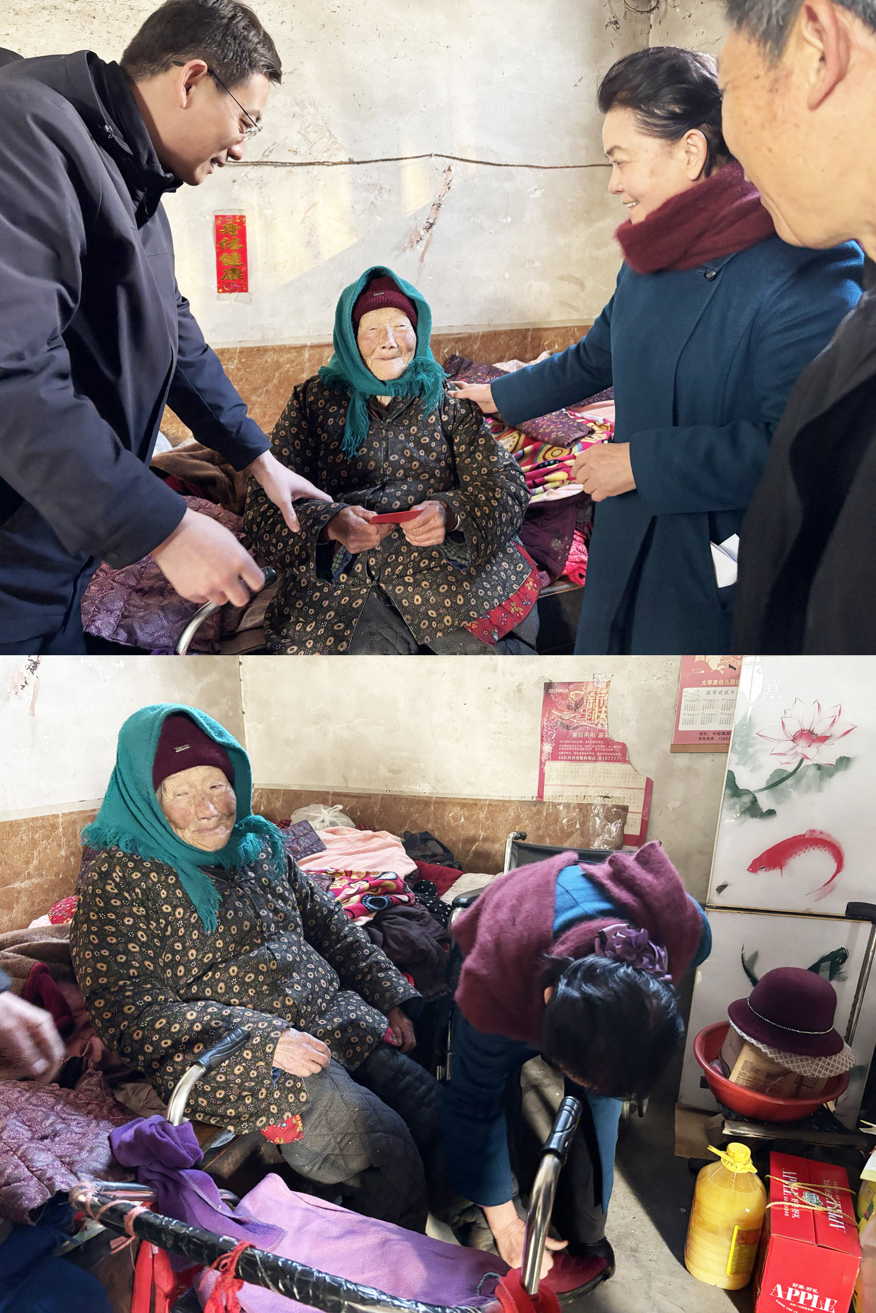 调研组走访慰问姜良真老人家,大姐细心查看老人的被褥是否暖和