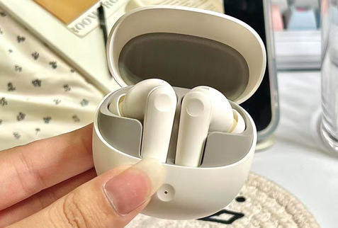 佩戴体验:单耳重量仅 4g 左右,采用基于 8 万 + 耳道数据库优化的 30° 斜入耳人体工学设计,搭配不同尺寸的高弹耳帽,佩戴起来贴合耳道,长时间戴也不易胀痛