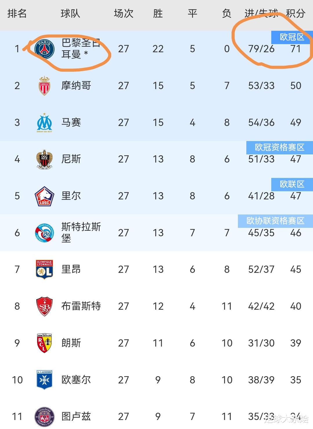 目前欧洲五大联赛进入到了冲刺阶段,冠军的争夺进入到了白热化,相比较其他四大联赛,作为五大联赛的法甲冠军即将产生,27轮过后大巴黎22胜5平拿到71分排在榜首,领先第二名的摩纳哥多达21分,在还剩7轮(法甲18支球队)的情况下,优势非常巨大!
