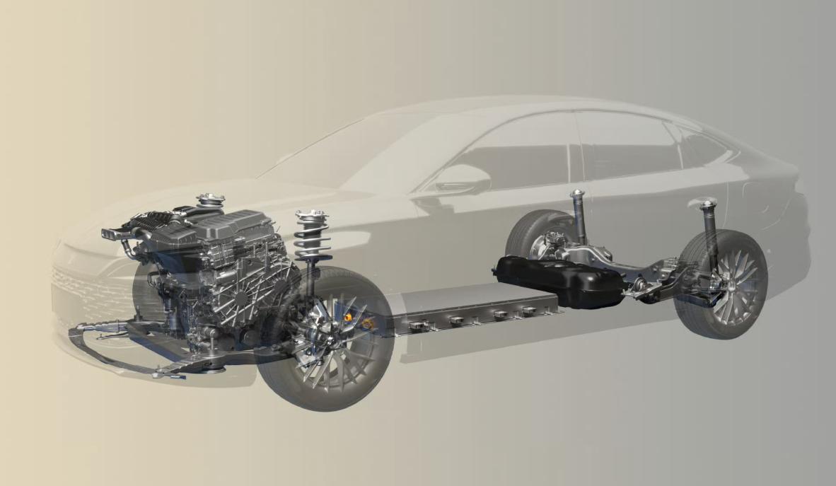 从谍照观察,车辆尾部设计相对简约,同时大量使用了横向元素,顶部有一个突出的扰流板,拉伸了车辆轮廓,同时兼顾了装饰性和实用性。可以参考的是,国产车型使用了一体贯穿式尾灯,内部有着复杂灯组。谍照尾灯被贴花覆盖,无法辨别尾灯造型,不过大概率会沿用现款车型造型。车辆后包围被贴花覆盖,具体造型无从观察。