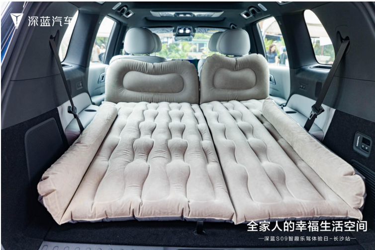 •静态体验:深蓝 S09 的空间设计堪称精妙,后备箱一键变形,瞬间化作舒适大床房,搭配全景天窗引入的浪漫星光,打造专属休憩空间。其 3.3kW 外放电功能更是将生活场景无限延展:现磨咖啡的醇香、手冲茶的氤氲热气在车内飘散;连接 PS5 与 Xbox 游戏主机,4K 车载屏即刻呈现震撼画面,让科技与生活实现完美交融。无论是户外露营、家庭聚会,还是独处时光,深蓝 S09 都能化身多功能生活舱,满足用户对品质出行的多元想象。