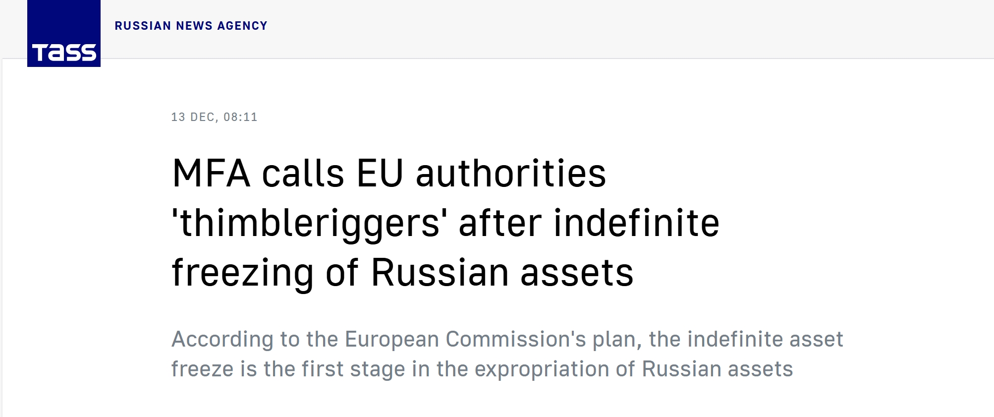 对此,据塔斯社的最新报道称,俄罗斯外交部发言人扎哈罗娃指责欧盟是“玩顶针骗术的骗子(注)”——翻译成大白话就是:上不了台面,只会玩街头骗局的骗子。