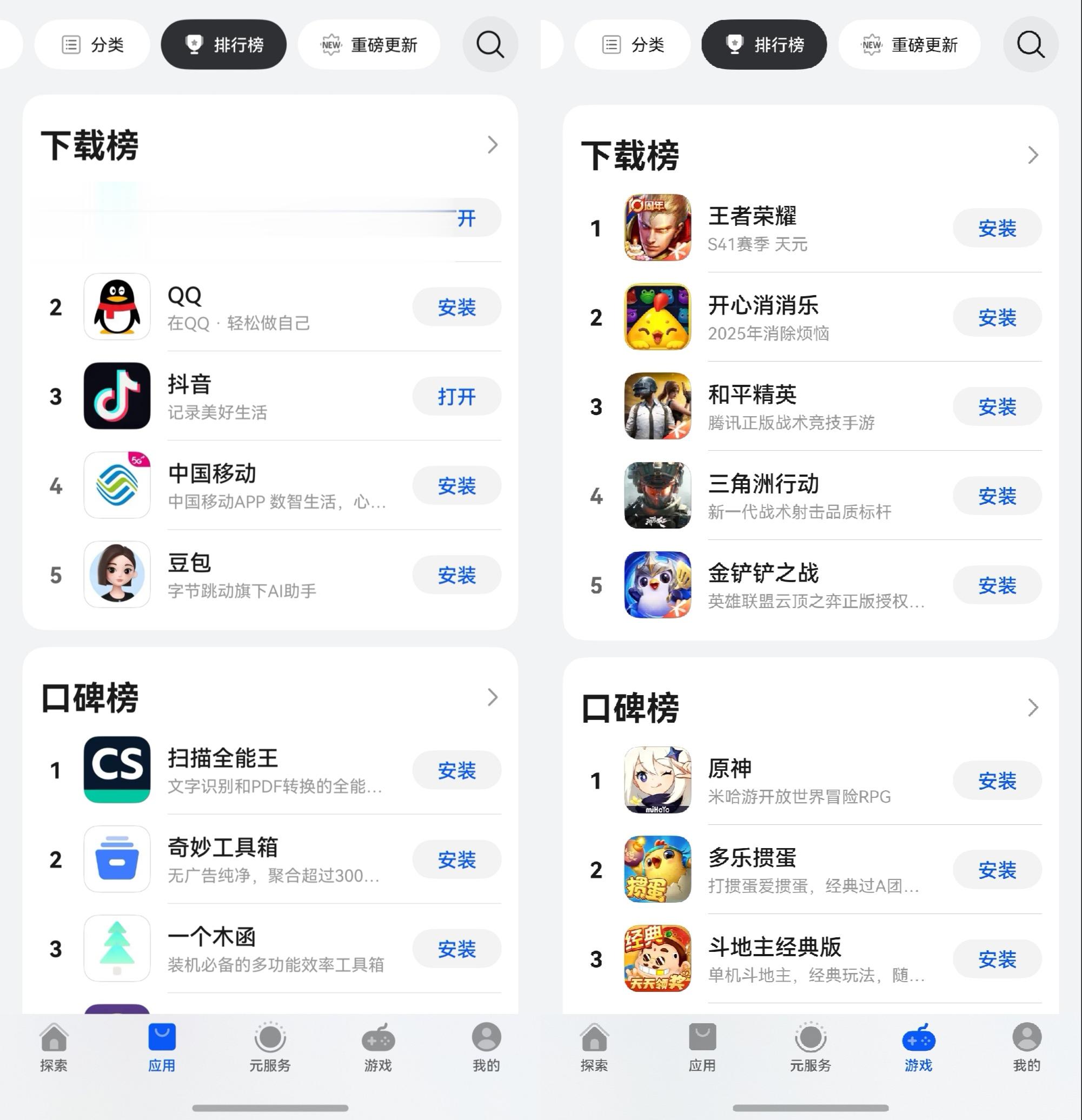 就我的感受而言,腰部胶囊是藏在华为应用市场里的“效率神器”。在腰部胶囊的排行榜特别分了下载榜和口碑榜,双维度筛选更省心:下载榜实时跟着大众偏好走,比如《王者荣耀》S41赛季一更新就冲上榜首,想知道当下大家都在玩什么、用什么,扫一眼就有数;口碑榜更实在,是按用户真实反馈筛出来的,瞬间掌握“无广告纯净”“装机必备工具箱”等宝藏工具,几乎不会踩雷。我就是在这里发现《记账本R》,用了一段时间,确实没有广告打扰,而且自动分类账单、同步消费记录都特顺手。