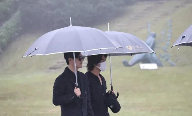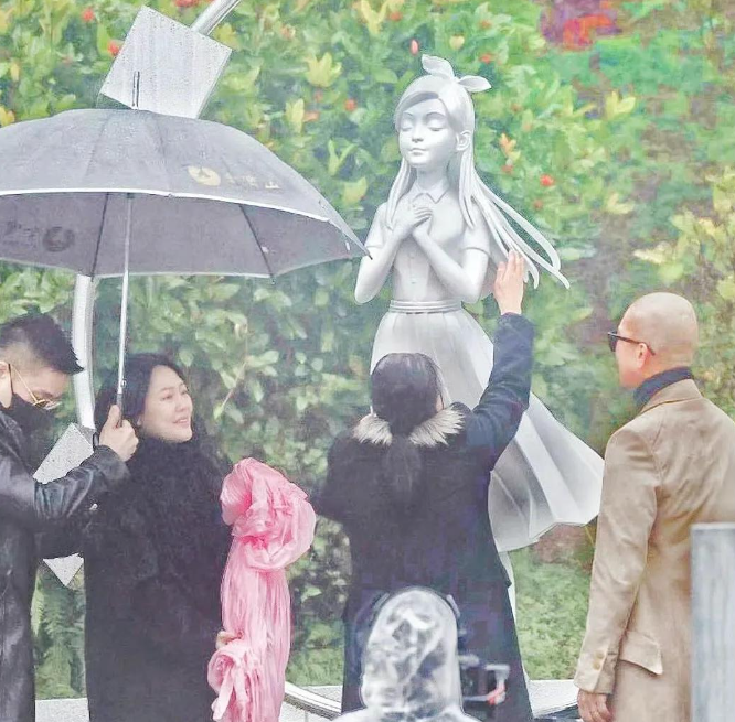 仪式在下午2点开始,现场细雨绵绵,氛围肃穆。S妈、小S和具俊晔亲手揭开了覆盖雕像的黑色帆布。看到姐姐的雕像,小S数度落泪,许雅钧则全程贴心地为她撑伞,将她护在怀里。S妈更是难掩悲痛,抱着雕像痛哭,具俊晔在一旁默默陪伴,为她撑伞。