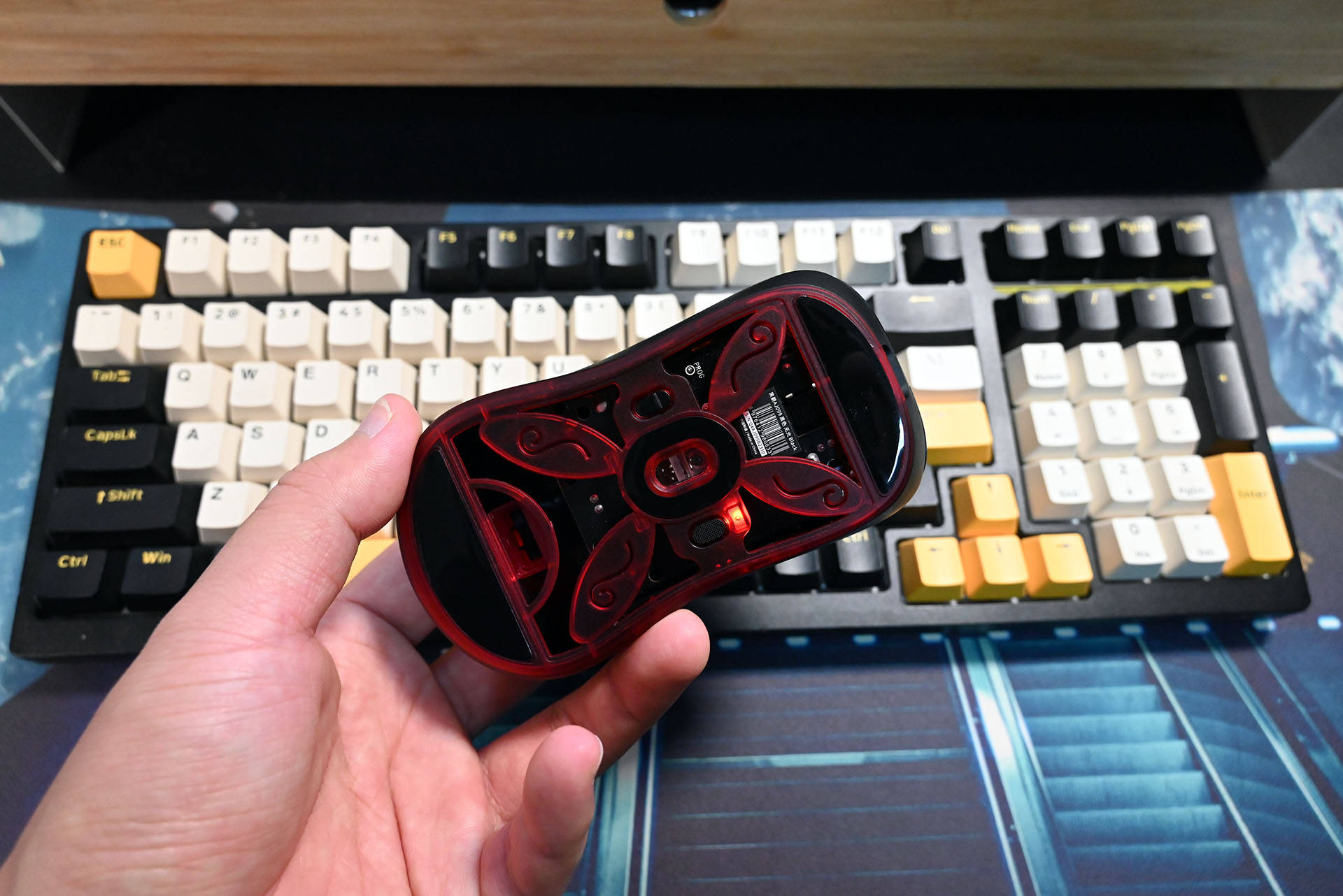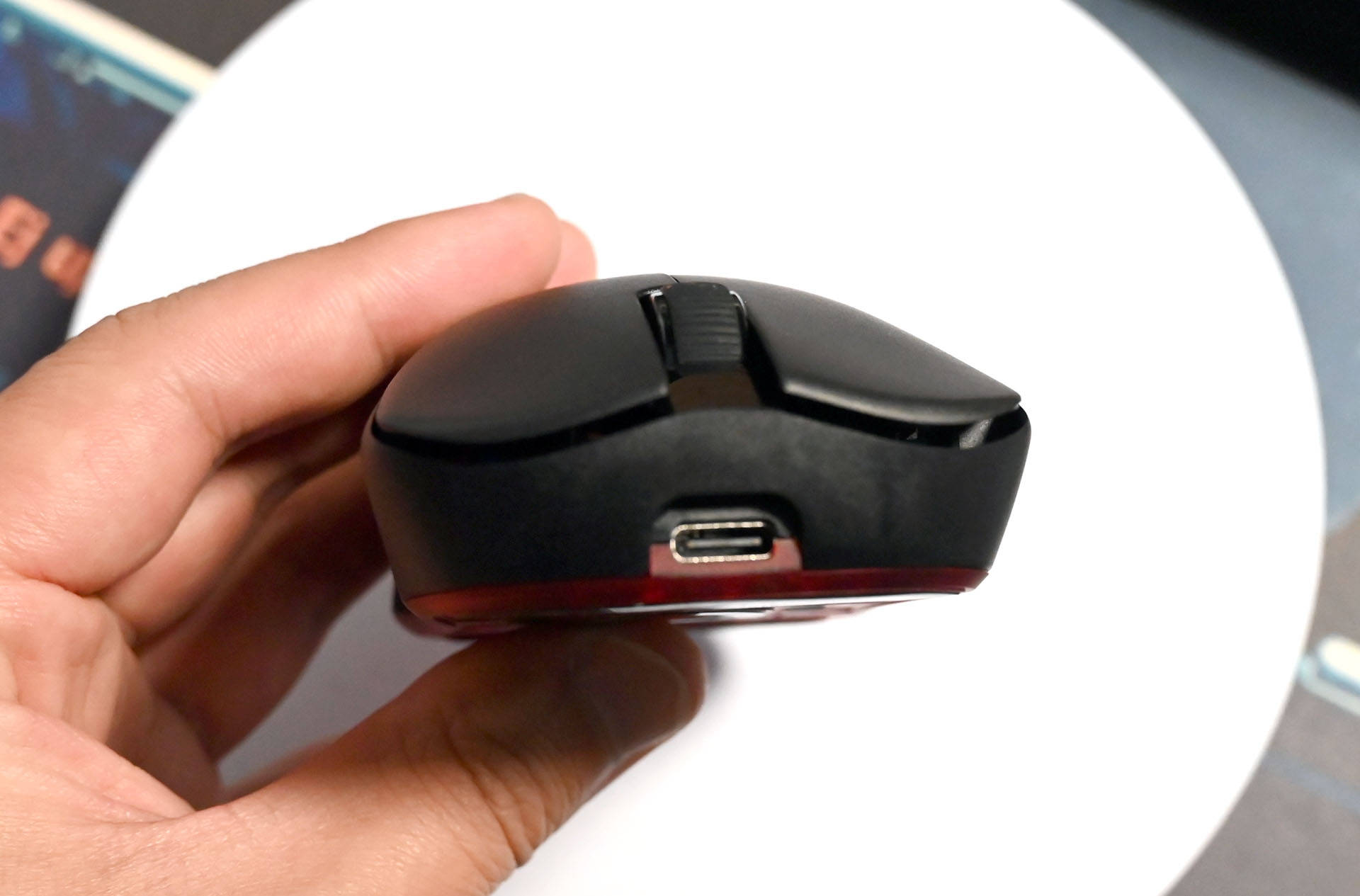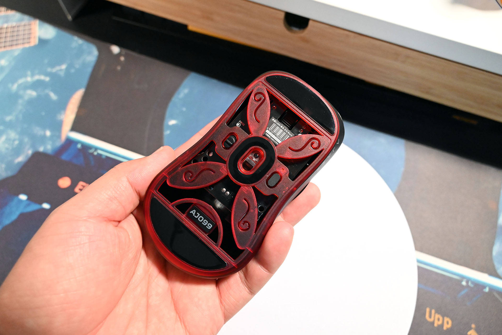 鼠标表面采用了细微磨砂处理,质感十足,同时也能有效防止指纹和油污。鼠标的颜色搭配也非常低调,黑色为主色调,底部则是暗红色,给人一种沉稳的感觉。