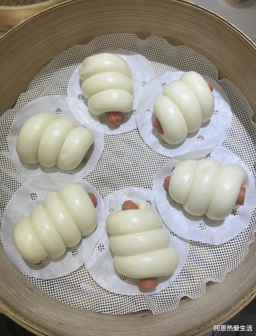 其实肠仔包最早是香港茶餐厅的经典早餐,后来慢慢传到内地,成了很多人的童年回忆。以前上学的时候,妈妈总会早起蒸几个肠仔包,装在便当里,课间拿出来还是温的,咬一口,满满的都是妈妈的味道。现在自己在家做,看着白白胖胖的肠仔包在蒸笼里慢慢膨胀,闻着飘出来的麦香,好像又回到了那个被烟火气包裹的清晨。