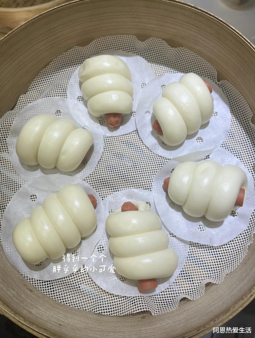 2. 冷水上锅蒸。冷水加热的过程中,肠仔包还能继续发酵,蒸出来更蓬松,直接开水上锅容易把面皮烫死,发不起来。