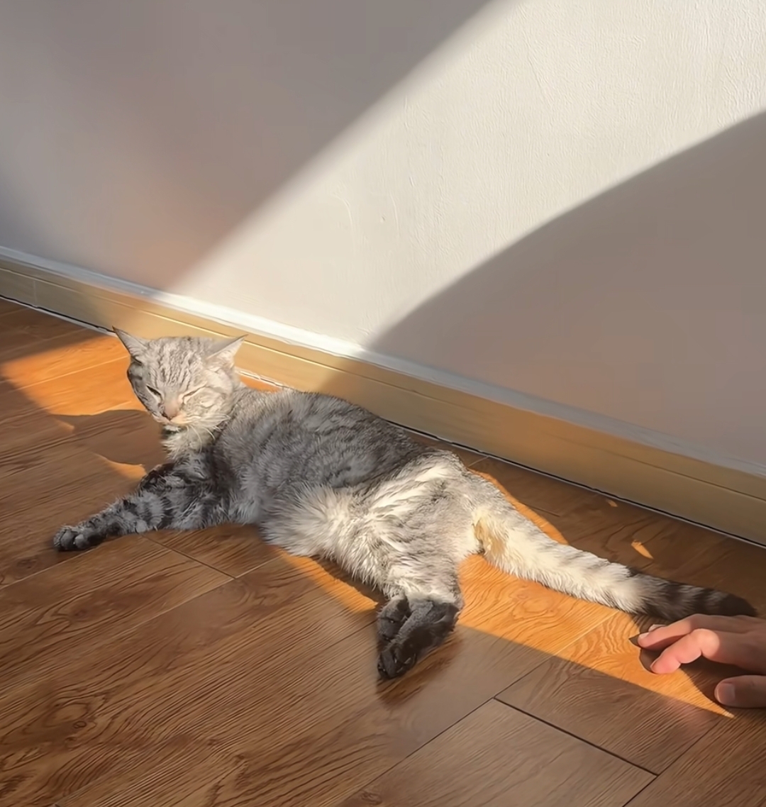 心善的王冠当然也是答应了,对于王冠老公来说,那只16岁的猫已经不是宠物,而是家人一样的存在了,接回家后,王冠老公经常带着猫咪晒太阳,陪它玩,看王冠晒出的照片就知道,男方真的是个很善良柔软的人。