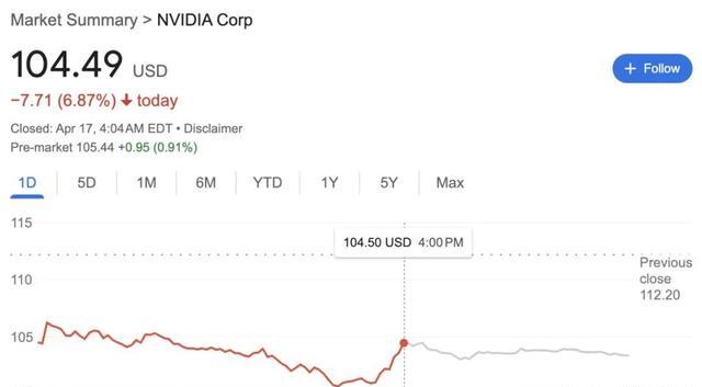在4月14号,美国政府的通知下达后,英伟达的股价盘后大跌6.3%,这还只是股市上的反应。