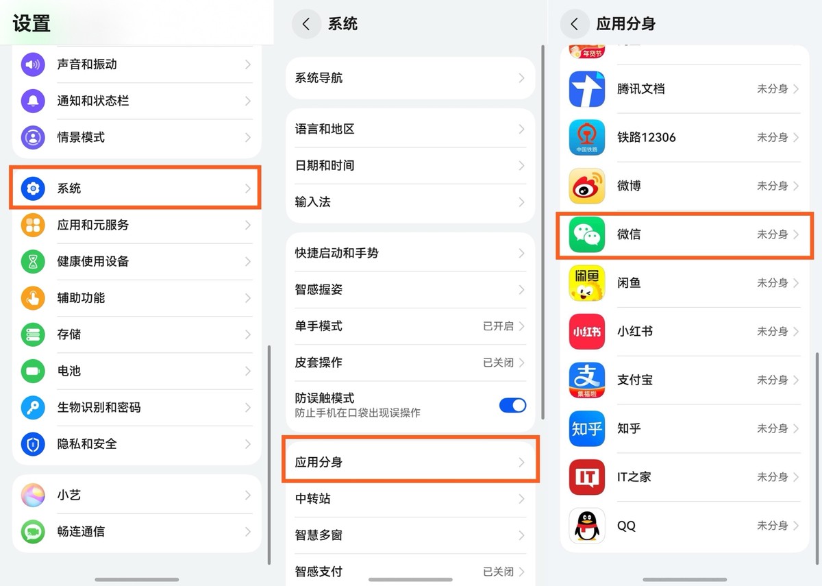 过年期间,免不了要兼顾个人聊天和工作消息,鸿蒙系统自带的应用分身功能刚好帮到你。只需要打开手机【设置】,找到【系统】里的【应用分身】选项,给微信开启分身,就能同时登陆两个账号,互不干扰。