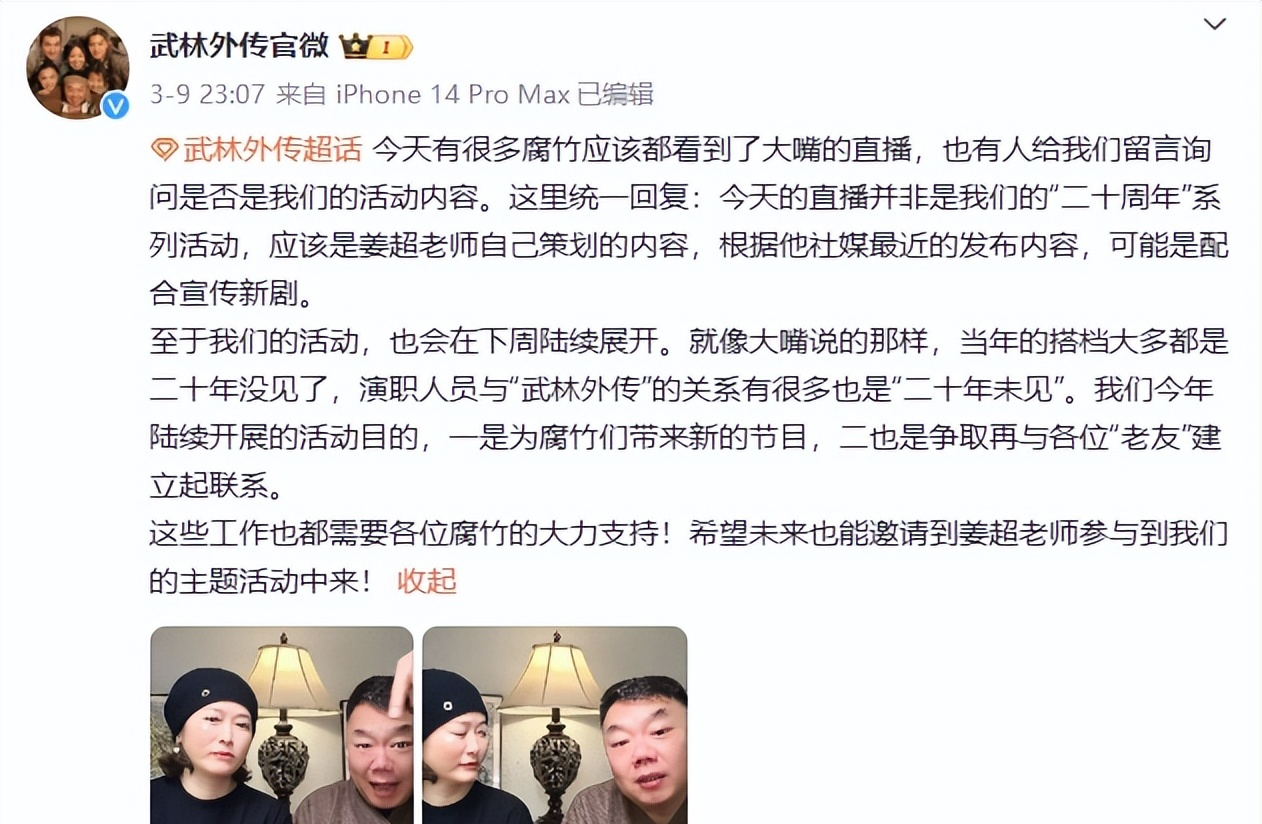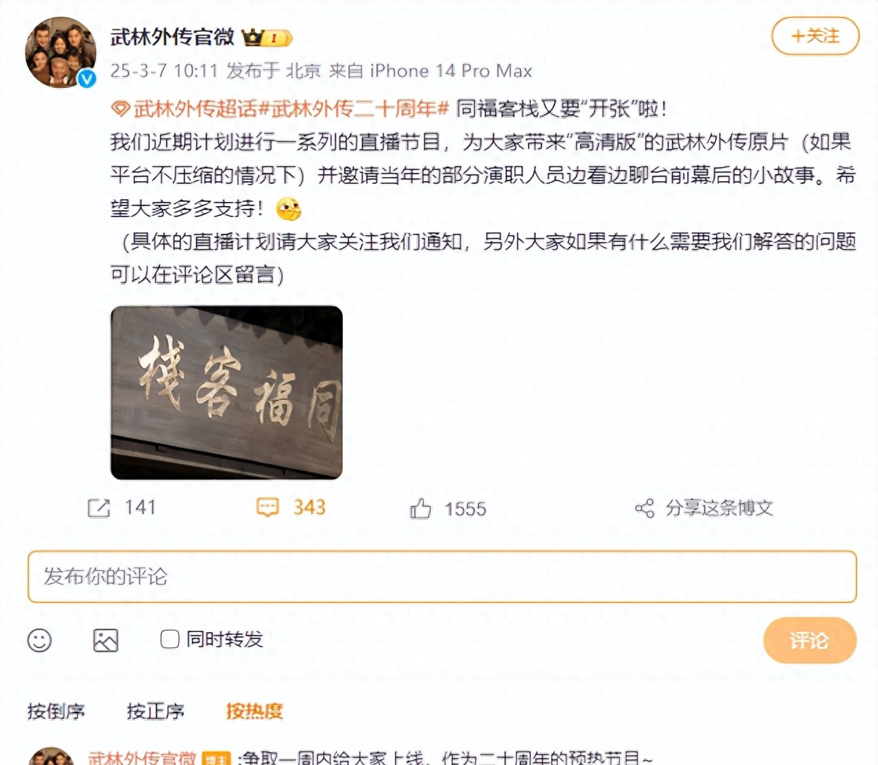 2024年1月2日深夜,演员姜超的手机屏幕突然被成百上千条@消息点亮。这位因饰演"李大嘴"而家喻户晓的演员,此刻正在成都某影视基地为新剧试妆。当他点开《武林外传》官微评论区,看到"腐竹"们对二十周年直播的疯狂催更时,化妆间的镜子映出了他湿润的眼眶——这个诞生于2006年的客栈故事,在短视频与元宇宙交织的时代,依然保持着令人惊叹的生命力。