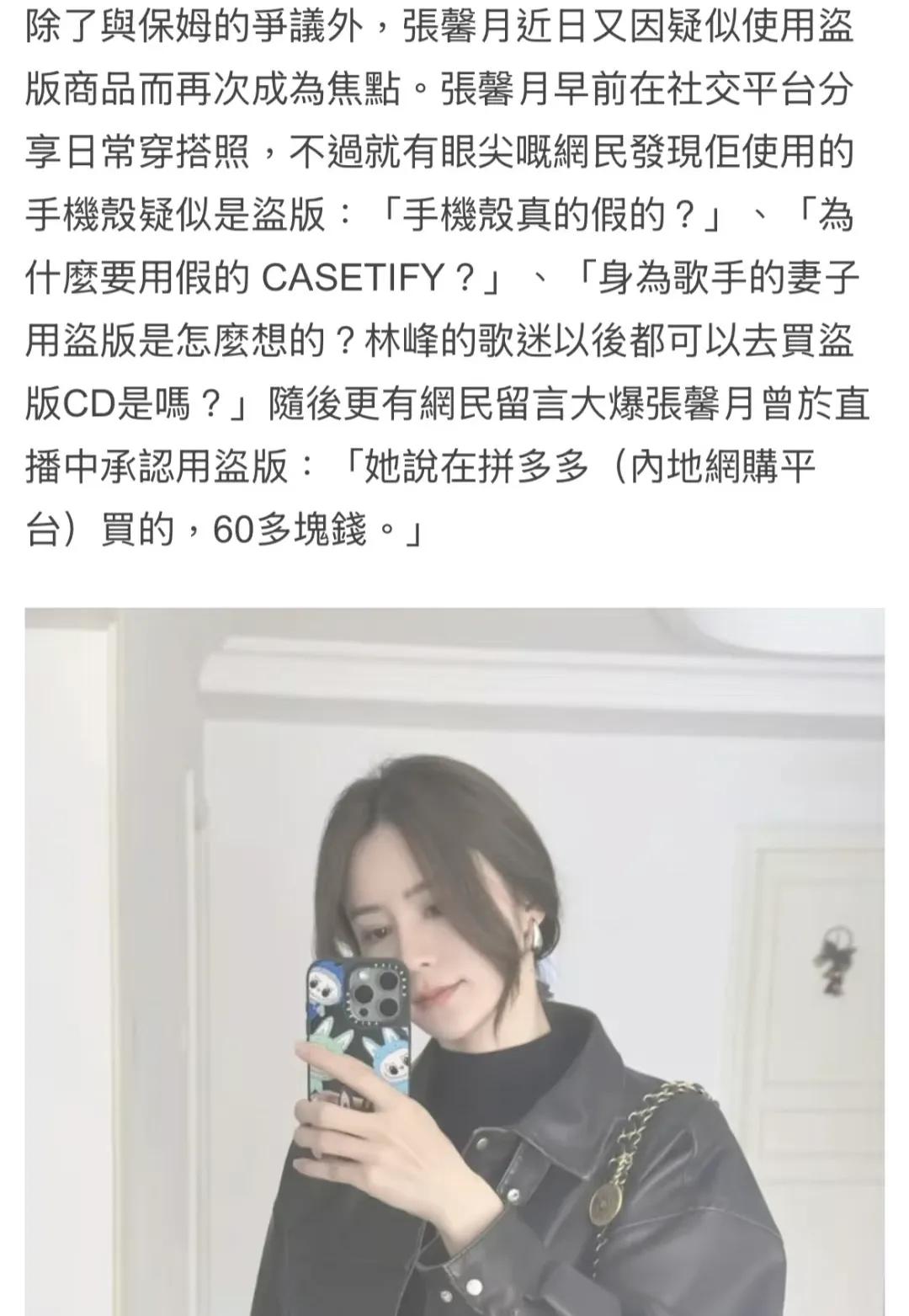 作为歌手林峰的妻子,应该对版权问题相当了解,也应该抵制盗版才对,可没想到她自己却用起了盗版手机壳。
