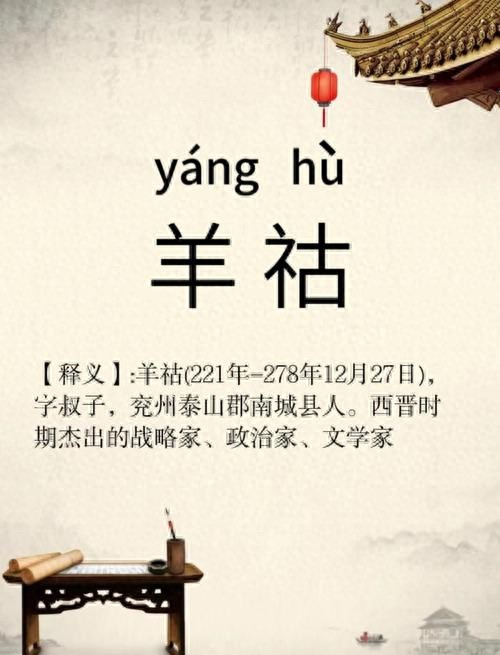 【出身名门,血脉非凡】羊祜字叔子,出身名门望族,姨母正是才女蔡文姬,妻子则是名将夏侯霸的女儿。这样显赫的家世,让他从小就接受了良好的文化熏陶和军事训练。