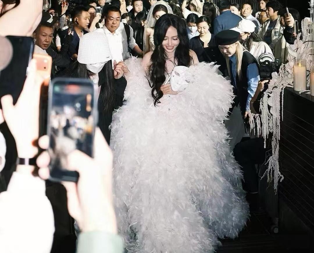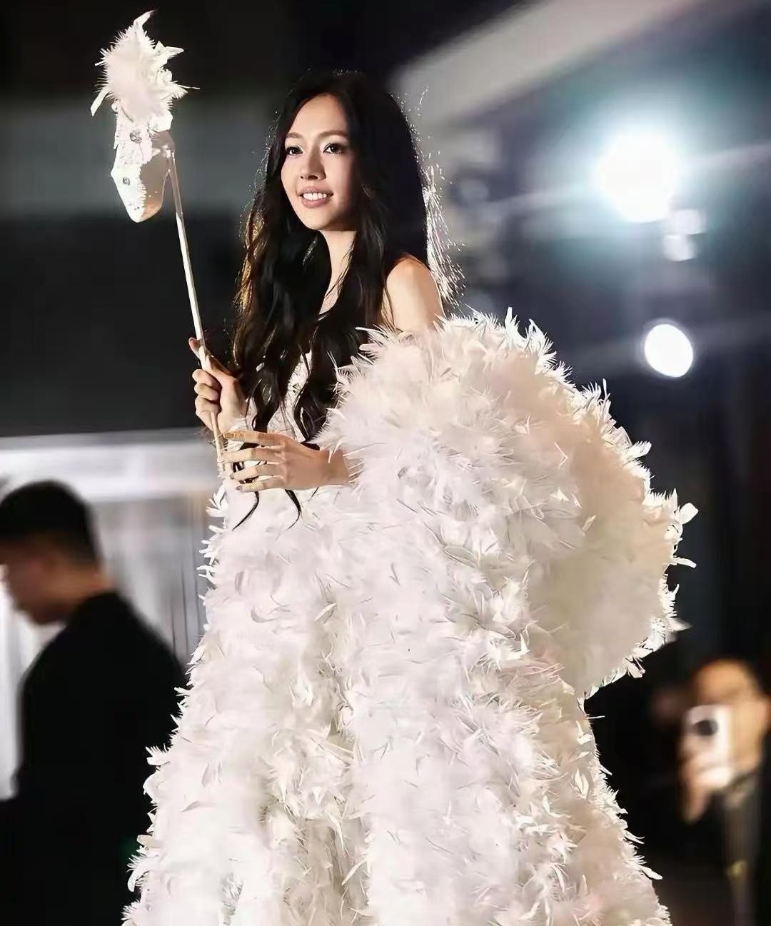 一袭白羽礼裙惊艳全场
