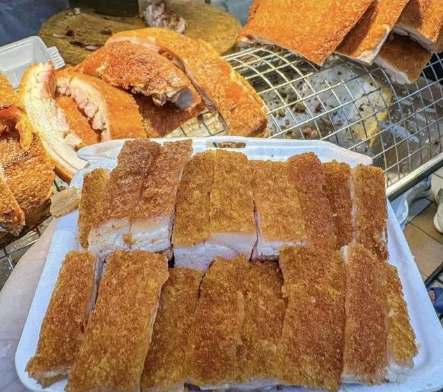 再讲讲这脆皮烧猪,真是让人瞅一眼就迈不动腿。就拿广州的烧猪来说,那猪皮烤得金黄金黄、油亮油亮的,就跟披了件亮闪闪的黄金甲似的。每次刚烤好端出来,那香味能飘老远,引得一群人排着队买。听说啊,一头 200 斤的猪做成烧猪,不大会儿就被抢没了,这受欢迎的程度,简直不敢想。老广们对这烧猪的喜欢,那真是爱到骨子里了。
