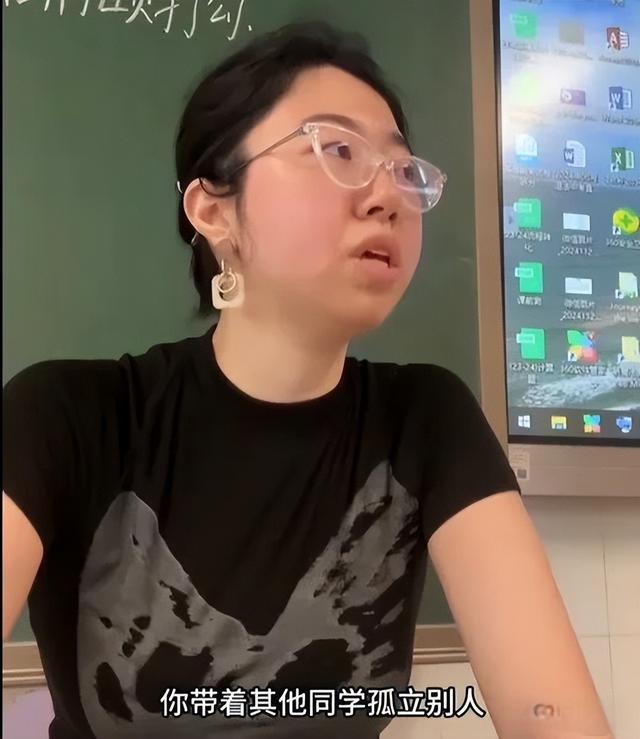 最后,该女老师表示,她看不得有任何人带着其他同学孤立别人,也看不得任何人威胁别人,看到有人做不对的事情的时候,希望大家不要帮助他们,应该及时制止,一旦被她知道了,绝对严肃处理,并撂下狠话:在我的班,再出现一例这样的事情,你试试看!