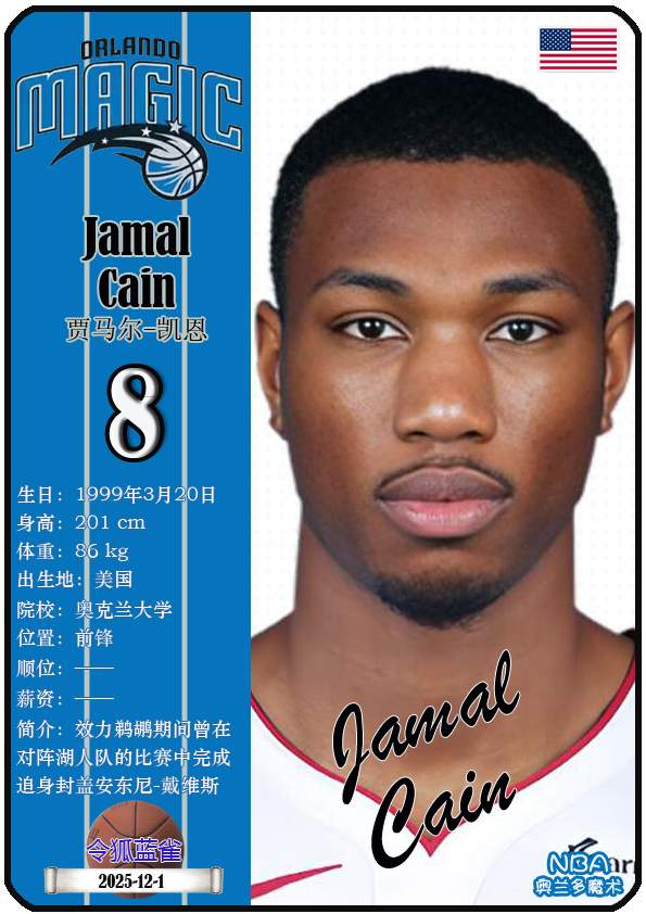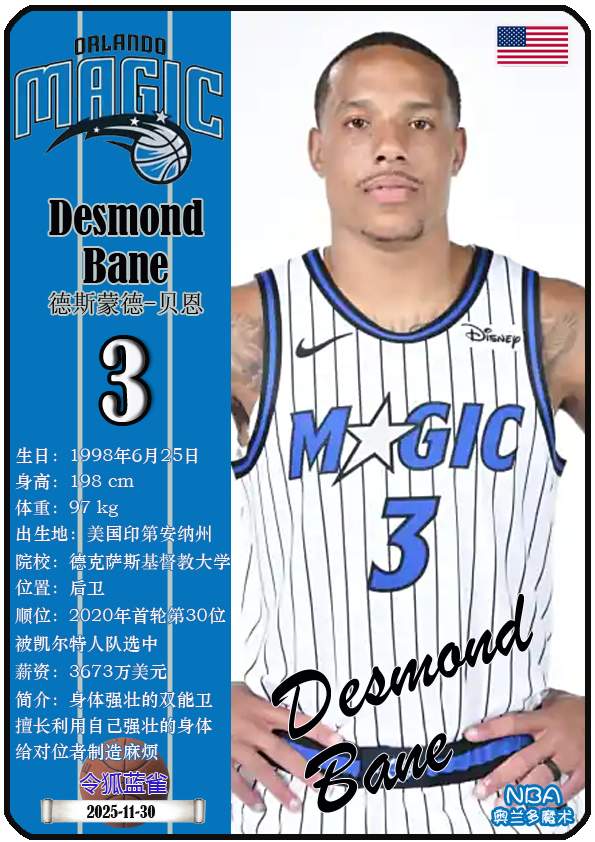 NBA奥兰多魔术队成立于1989年,距今已有36年历史。截至2025年12月1日,球队主教练是贾马尔-莫斯利,队内拥有球员弗朗茨-瓦格纳、德斯蒙德-贝恩、杰伦-萨格斯等。本期以球星卡的形式展示目前NBA奥兰多魔术队的17名球员(按球衣号码排序):