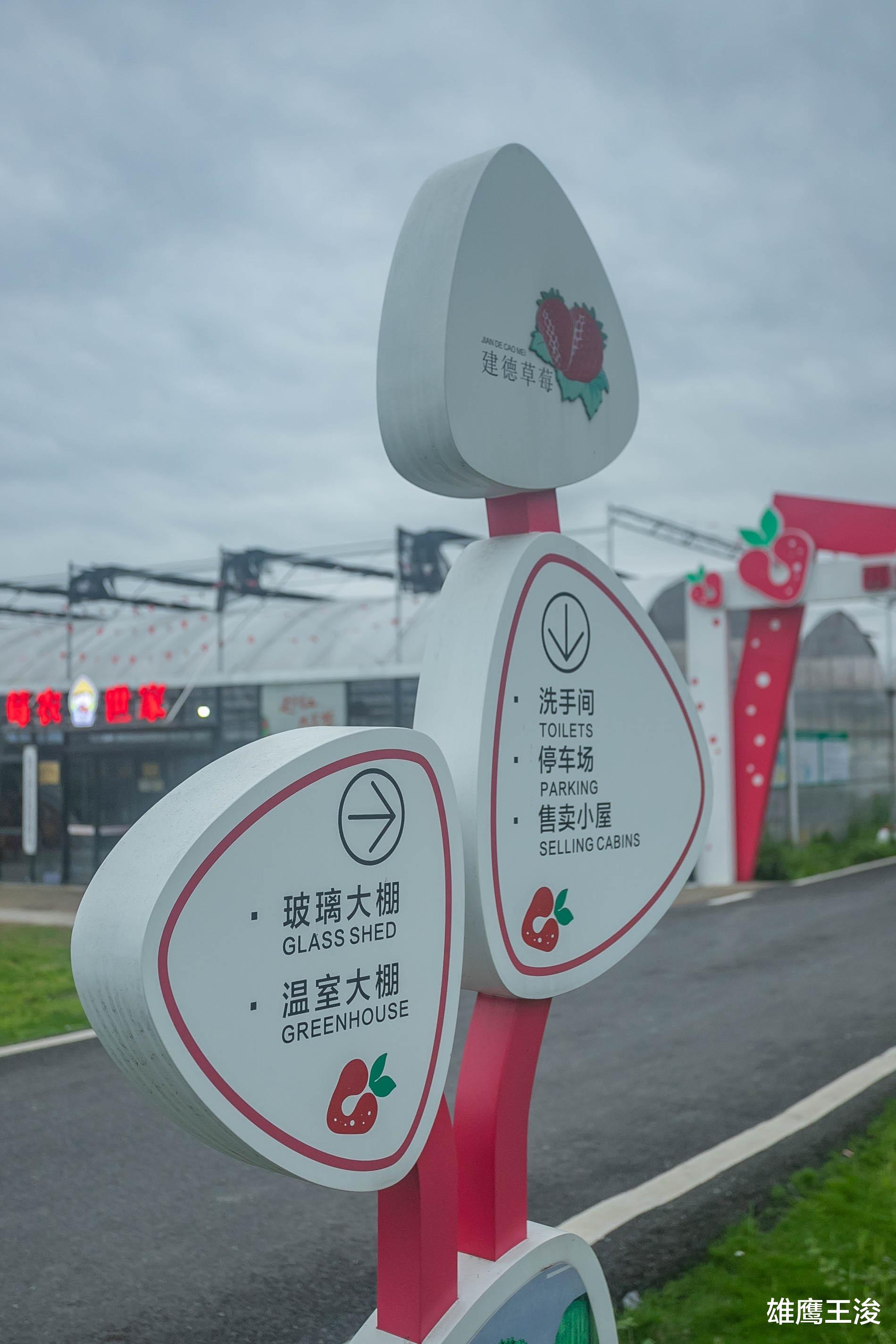 我们来到的是建德市大同镇西乡草莓园, 大门外那几只“数智集装箱”特别显眼, 再加上几个以草莓为蓝本的可爱玩偶, 这眼前的一切让我的心情更加期待。