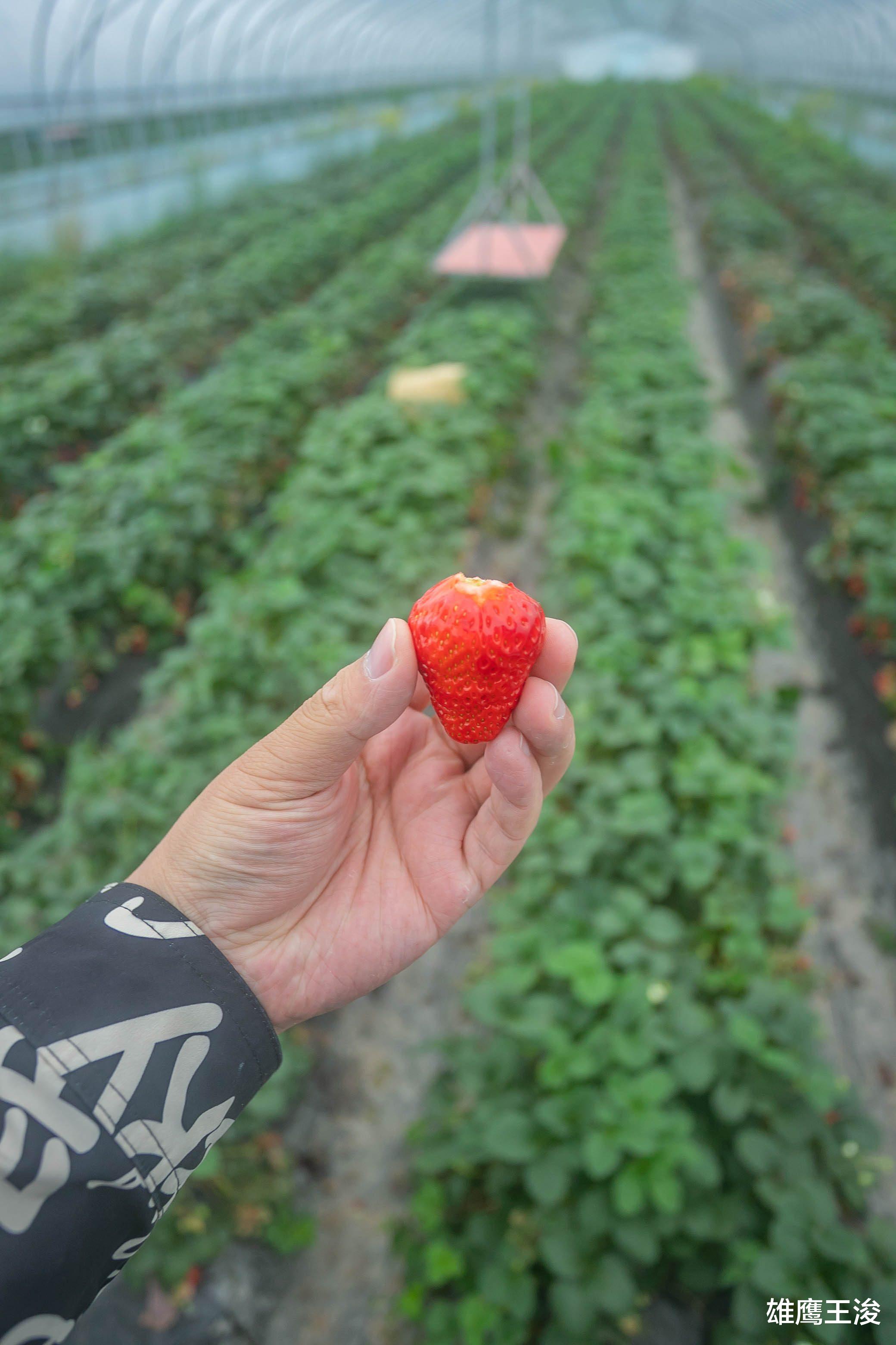 迫不及待的摘下一颗尝了尝,一个字甜!来之前就听说这里的草莓色泽红润鲜亮,香味浓郁,肉柔汁多,果然如此。