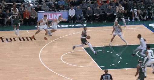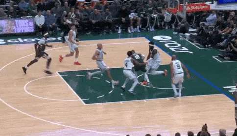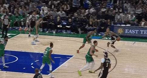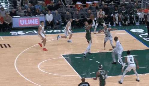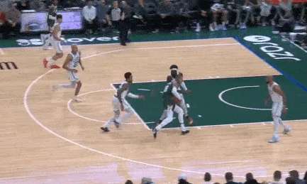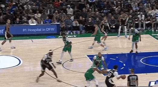 凯尔特人使用中锋奎塔错防库兹马,于是雄鹿顺势让特纳底角拉开,库兹马上前掩护:早期进攻为波特设置“Touch Screen“后迅速下顺,