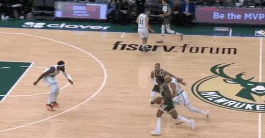 安东尼和波蒂斯边路挡拆走掩护墙反方向直杀篮下,吸引加福德协防,