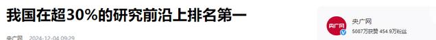 信息来源:央广网2024-12-04————我国在超30%的研究前沿上排名第一
