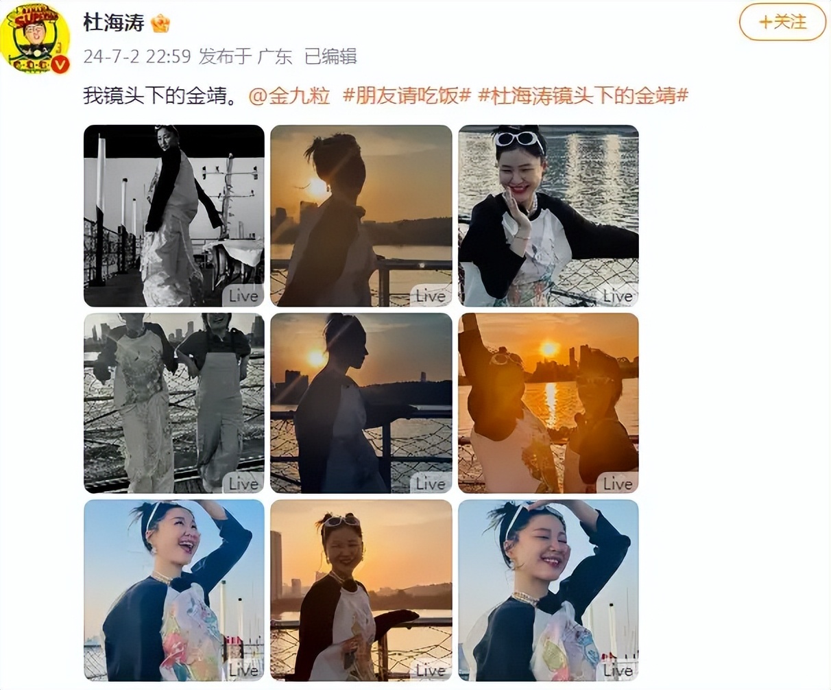 这事发酵好几天了,起因是杜海涛在综艺《朋友请吃饭》里给金靖拍了一组照片,用色取景角度都是一绝。
