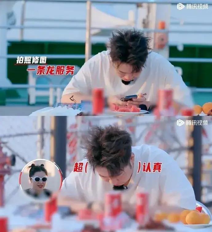 杜海涛也马不停蹄开始坐下修图,非常认真。