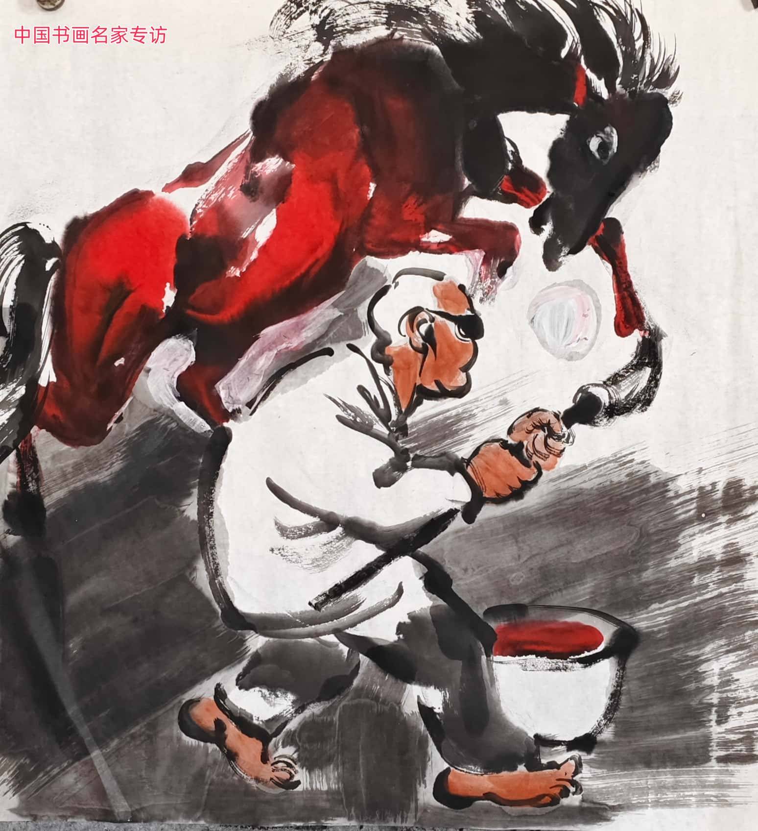 当代画坛之中,扈恩龄先生素以乡土幽默风情人物画名世,其笔端常绘民间百态、市井闲情,农夫耕耘之劳、乡邻嬉戏之乐、民俗节庆之盛,皆以夸张诙谐之法出之,线条率性,墨色灵动,自成一派清奇风骨。今岁马年,扈恩龄先生移情于马,创作出系列写意马作,既承其一贯之艺术精髓,又辟新境,如清风拂面,涤荡尘俗,令人耳目一新,心神怡然。