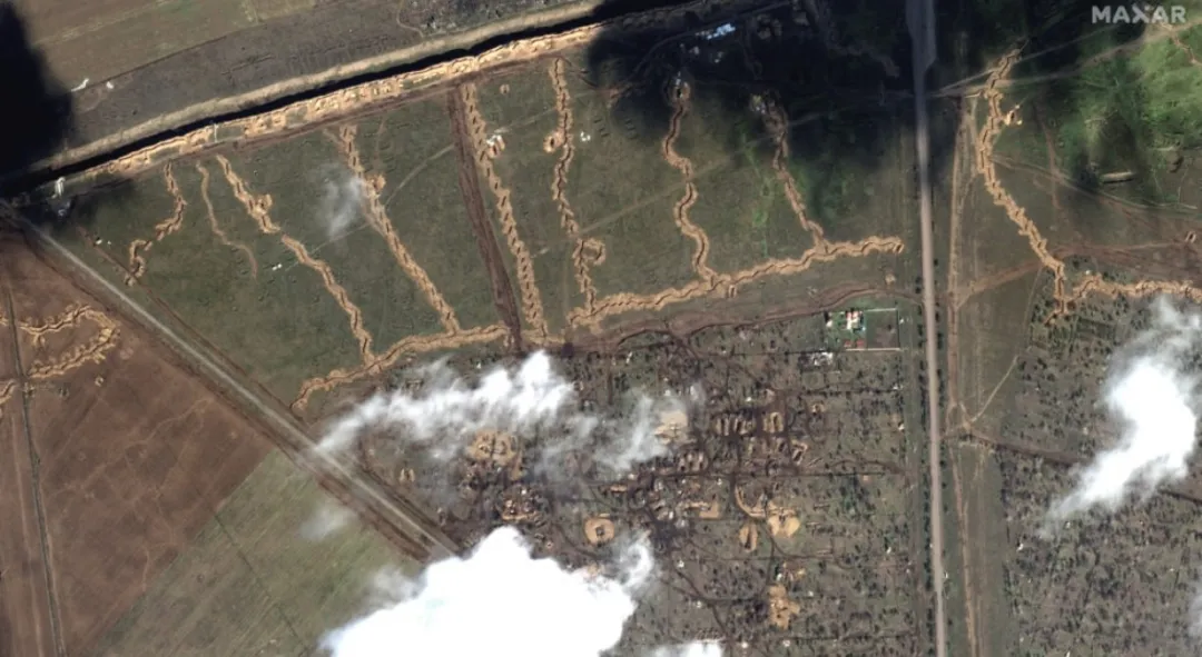 俄军随后连续投放 8 架携带爆炸物的无人机,战壕起火。