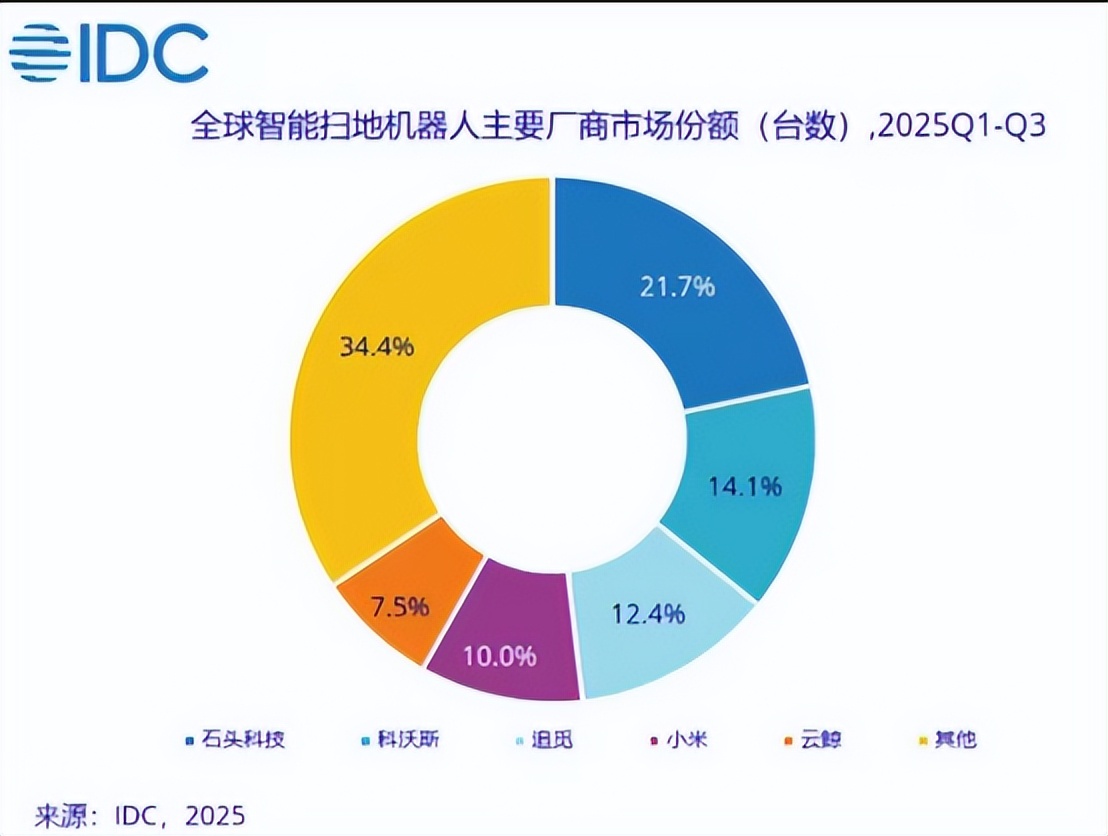 石头、科沃斯、追觅、小米、云鲸这五家,包揽了全球出货量前五,加起来占了60%以上份额。