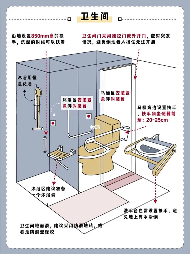 卫生间是家中安全事故的高发区,合理的安全设计能有效预防意外发生。