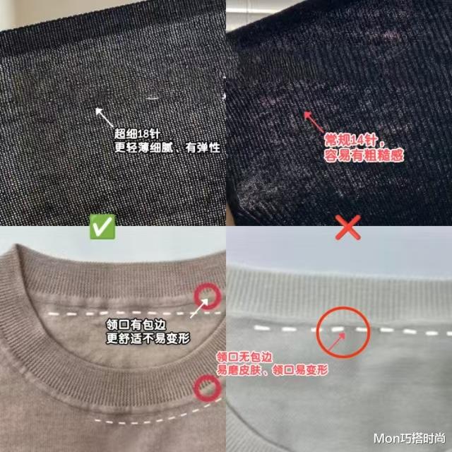最好选细针密织的棉混纺、天丝或冰丝材质,如超细18针面料。罗纹收边、领口包边也会让针织衫更舒适、不易变形。怕显胖姐妹还可挑微带垂坠感的针织衫,避开硬挺膨胀的粗棒针织。