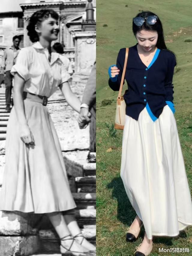穿对赫本裙的人,早把春天穿成了行走的诗篇。当它的复古腔调撞上短款针织衫的慵懒松弛,不就等于直接把《罗马假日》的浪漫穿在了身上吗?