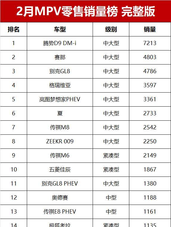 你以为买MPV就等于买了“移动的家”?错!现在MPV市场,可比你想象的要复杂得多!春节刚过,2月MPV销量榜出炉,数据背后隐藏的真相,远比你看到的7213辆腾势D9冠军宝座更精彩。有人欢喜有人愁,有人稳坐钓鱼台,有人却在苦苦挣扎求生存。这看似平静的市场水面下,暗流涌动,是价格战的硝烟,是技术革新的角逐,更是新老势力之间你死我活的较量!