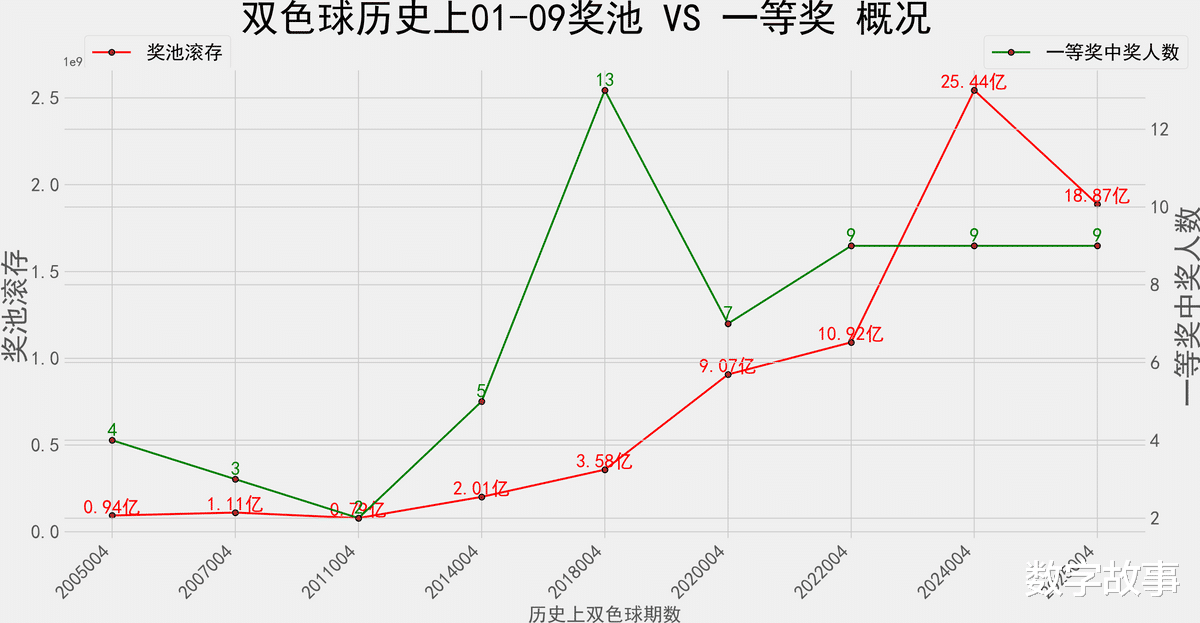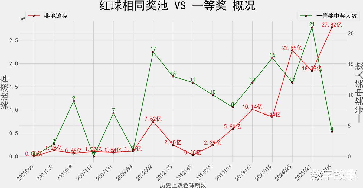 奖池滚存&一等奖数 走势图: