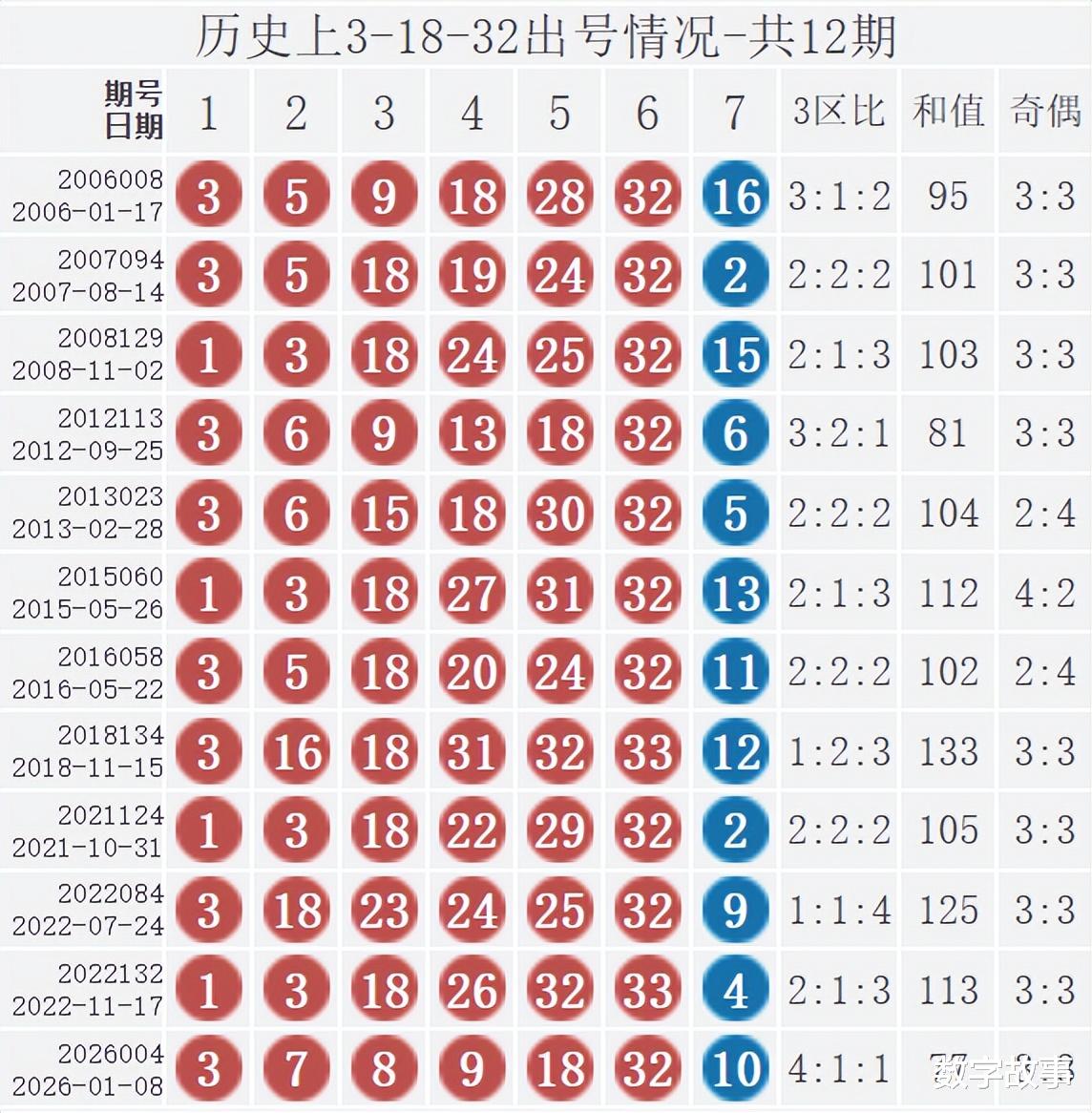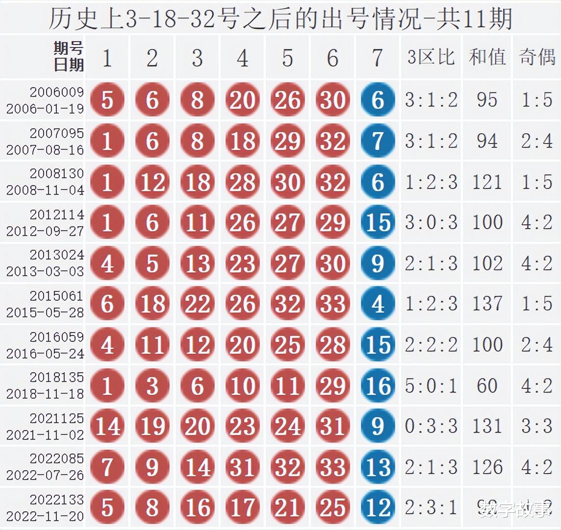双色球红球含3-18-32历史统计