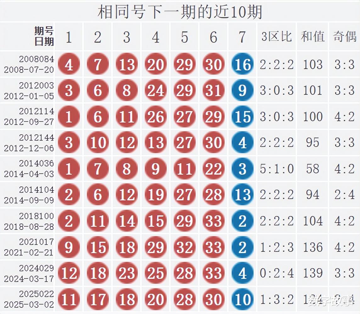 相似号下一期的近10期统计: