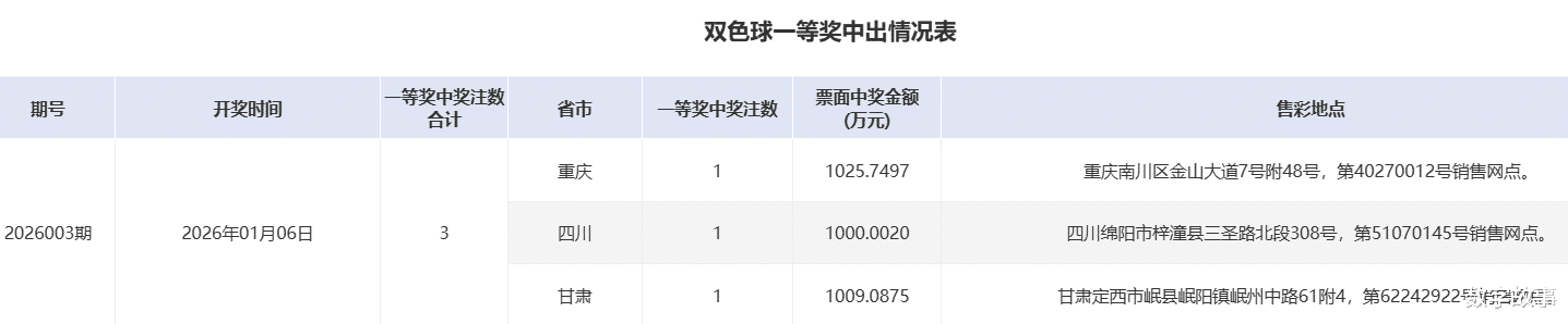 双色球26003期一等奖中奖详情