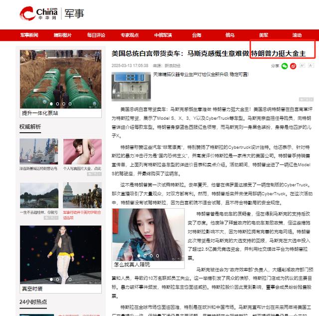 信息来源:中华网2025-3-13美国总统白宫带货卖车:马斯克感慨生意难做,特朗普力挺大金主