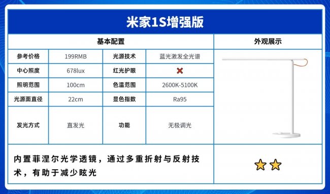 十大护眼台灯品牌排行榜前十名有哪些品牌?米家台灯1S增强版延续了米家产品一贯的简约设计风格,在硬件配置上属于基础款。由于采用直发光设计且光源面较窄,光线的扩散性和均匀度一般,所以UGR防眩指数在19以上,直发光带来的眩光比较明显,长时间使用可能会感到眼部疲劳。