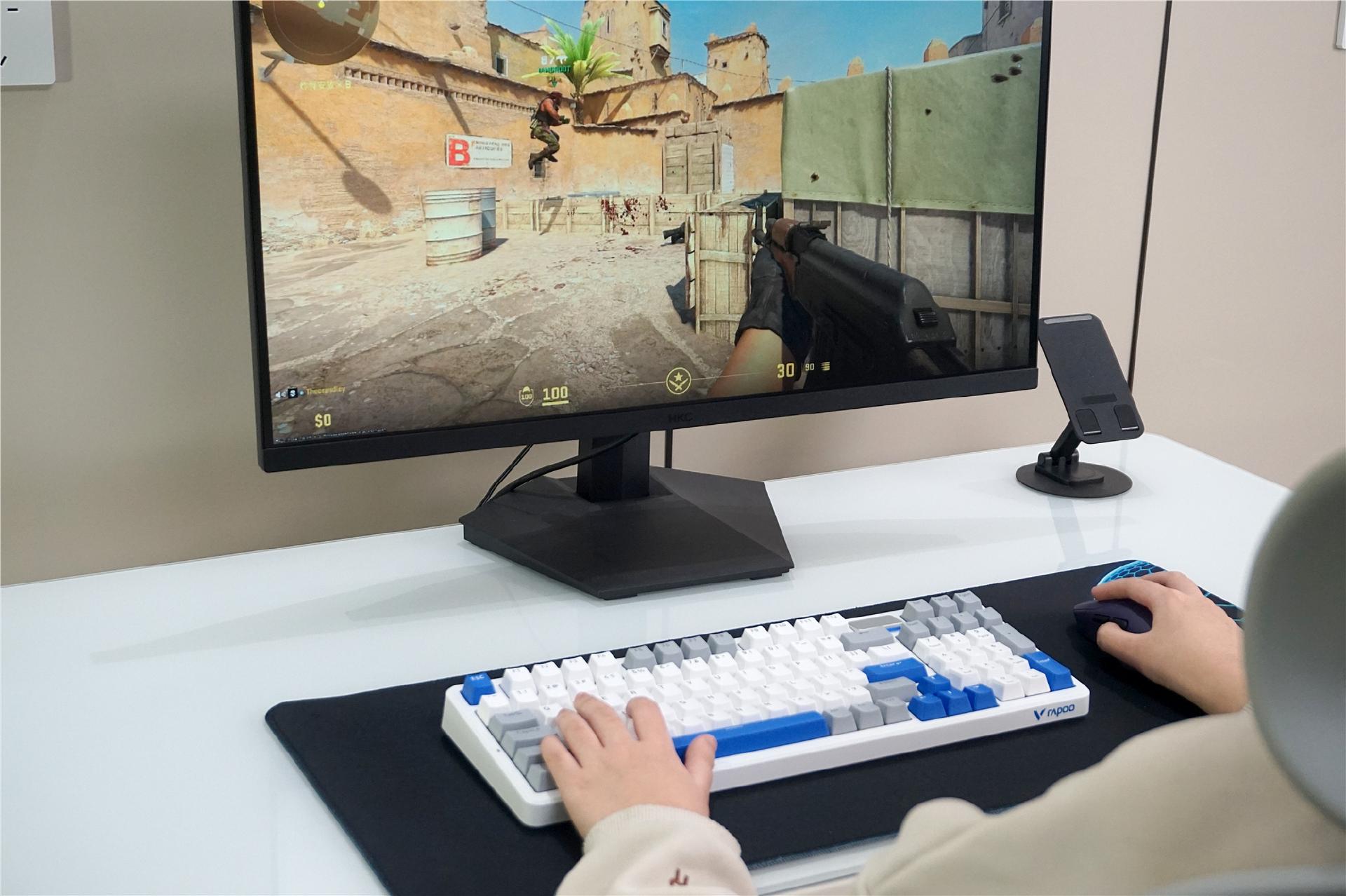 键盘的触发也超灵敏,蹲跳射击同时按也不会有按键冲突,98配列省出不少桌面空间,大幅甩动鼠标拉枪时也不会磕到键盘。而且稳定的无线信号也不用慌突然断连,避免关键时刻掉链子。