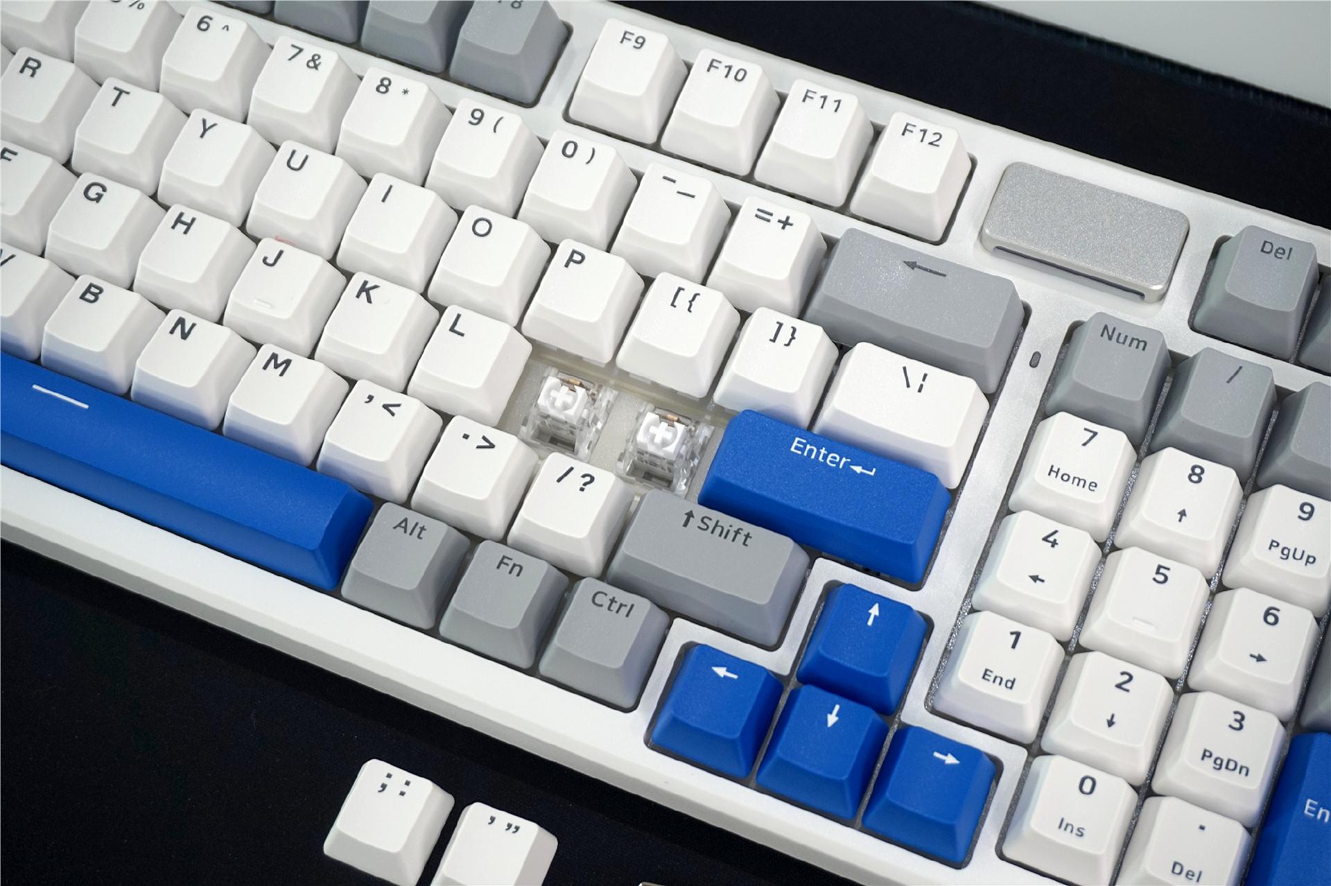 V700DIY-98长续航版还采用了出厂OEM高度的高浓度PBT键帽,表面纹理细腻,不仅耐磨不易打油,还能增加指尖与键帽的摩擦力,敲击更稳定。