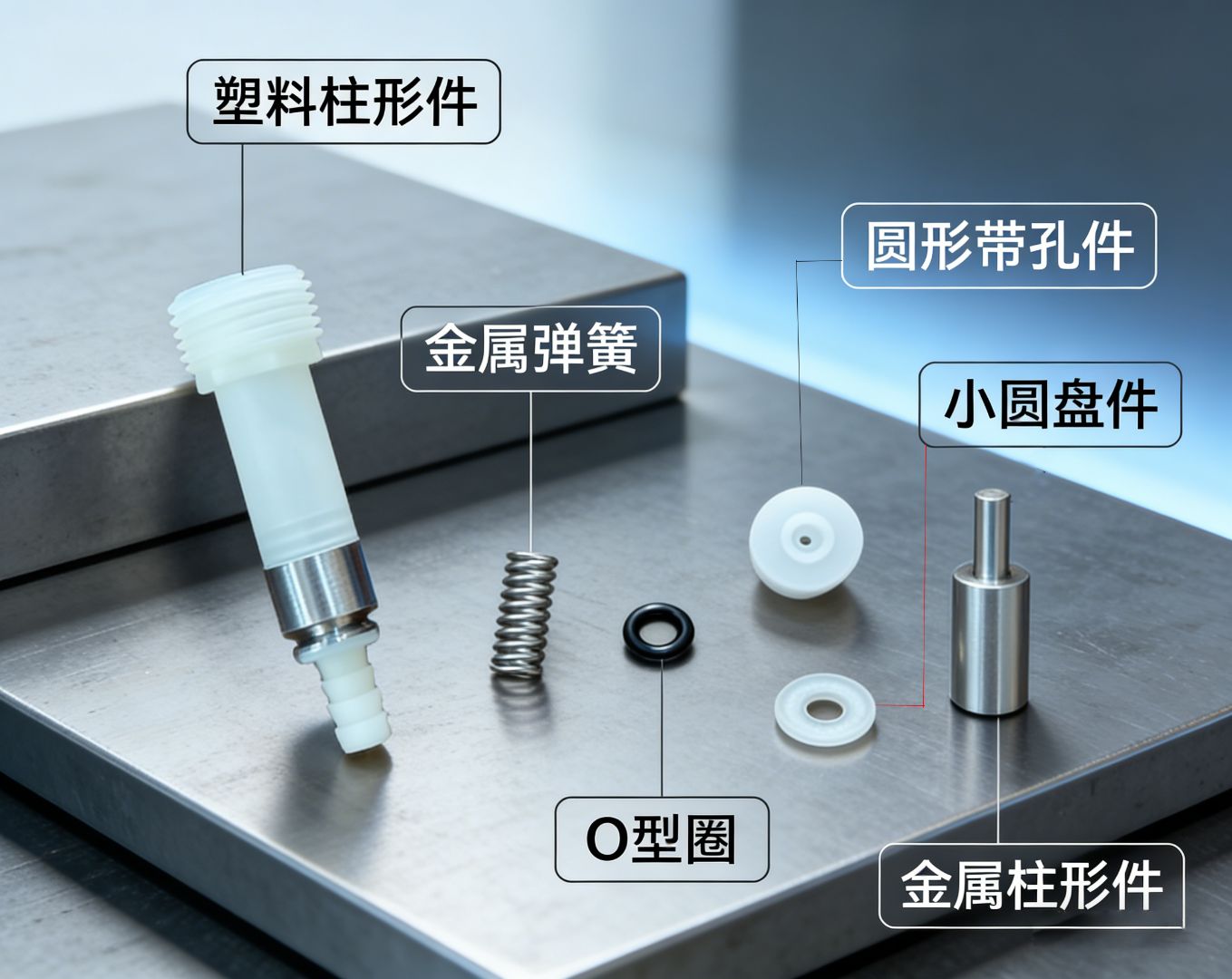 由于弹簧和金属柱体预先放入,组装治具需预留避位空间,确保翻转组装时密封圈等零件不受干扰。塑胶件的定位槽应设计为便于人工放件且稳定可靠。